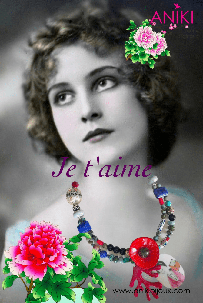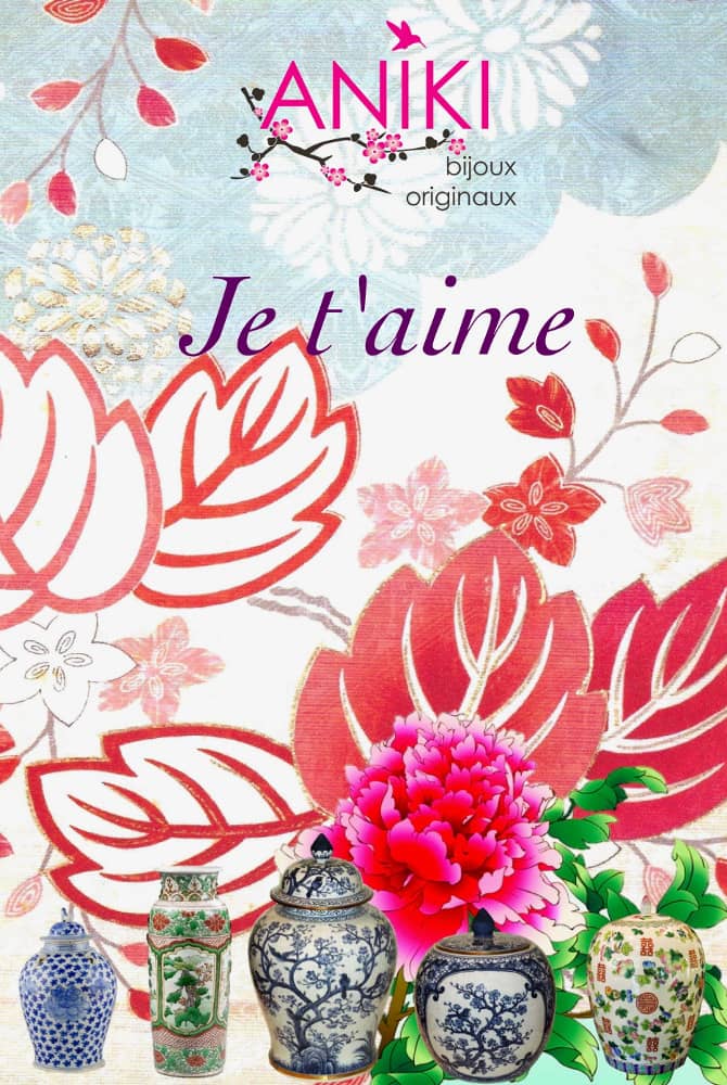 Carte-cadeau "Je t'aime" avec un visuel d'une femme portant un bijou.