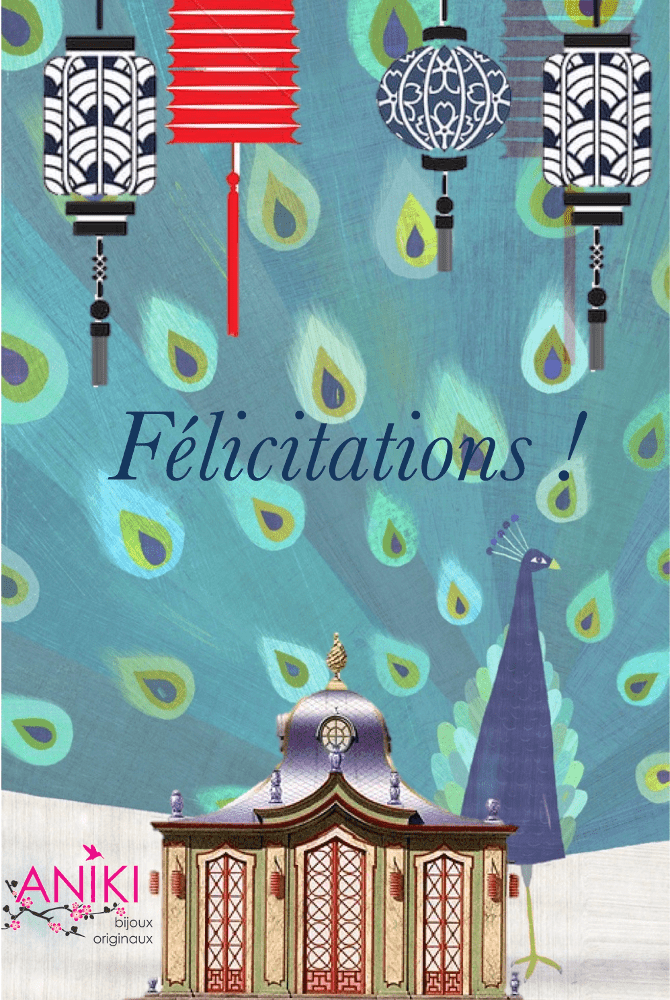 Carte-cadeau "Félicitations" avec un visuel de paon.