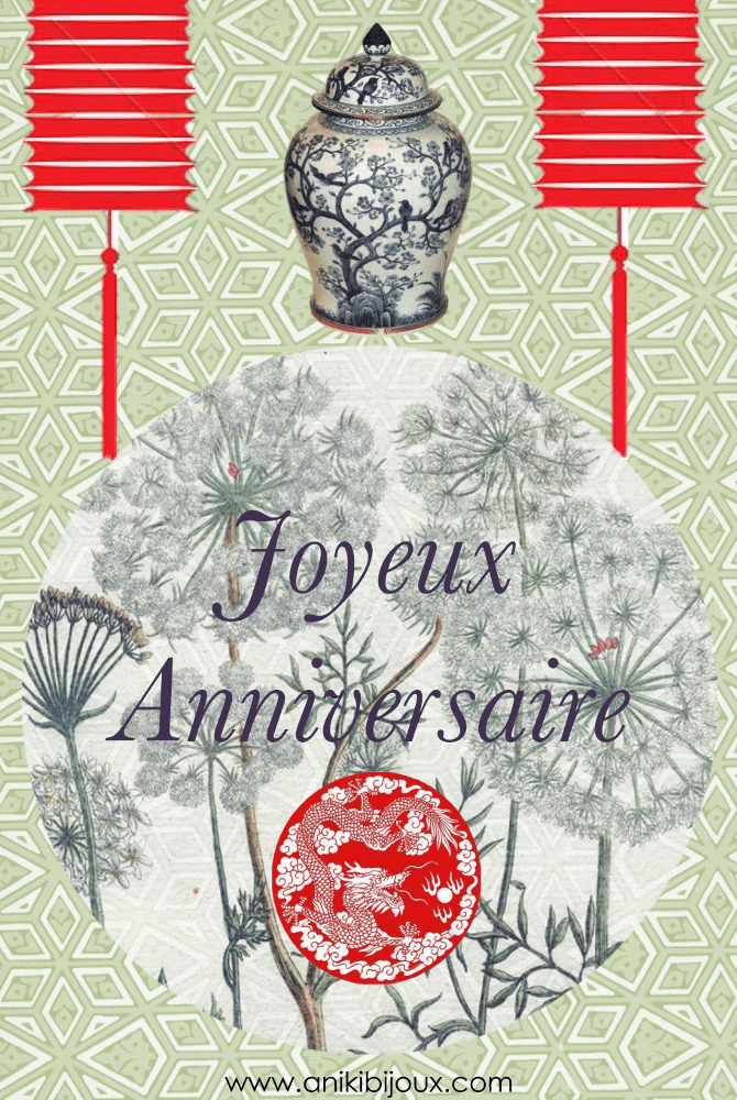 "Joyeux anniversaire" visuel vase asiatique et pissenlits